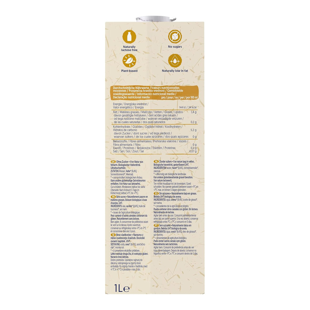 Alpro Bio Haferdrink without sugar combines the authentic taste of oats with a moderate calorie formula, supporting a balanced lifestyle. With a balanced nutritional content and simple ingredients, it is a suitable choice for quick mornings, daily coffee or slow cooking recipes and vegan sweets. Due to its organic origin and plant-based orientation, it offers a sustainable option for those who want to shift their daily habits to plant-based alternatives, without compromising on taste or texture.