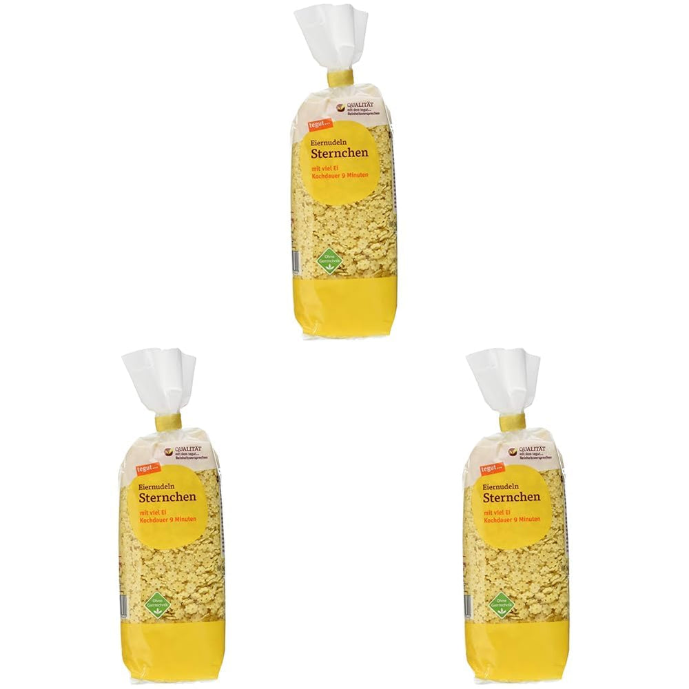 tegut... Eiernudeln Sternchen is the star-shaped egg pasta created for authentic pasta lovers who appreciate clean ingredients. Suitable for family meals, these golden stars add a fun element to the plate and lend themselves to soups as well as meat dishes or pasta salads.